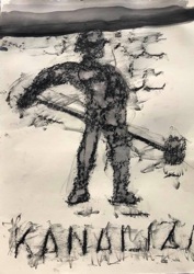 Frottagen, Tusche auf Karton, 2021